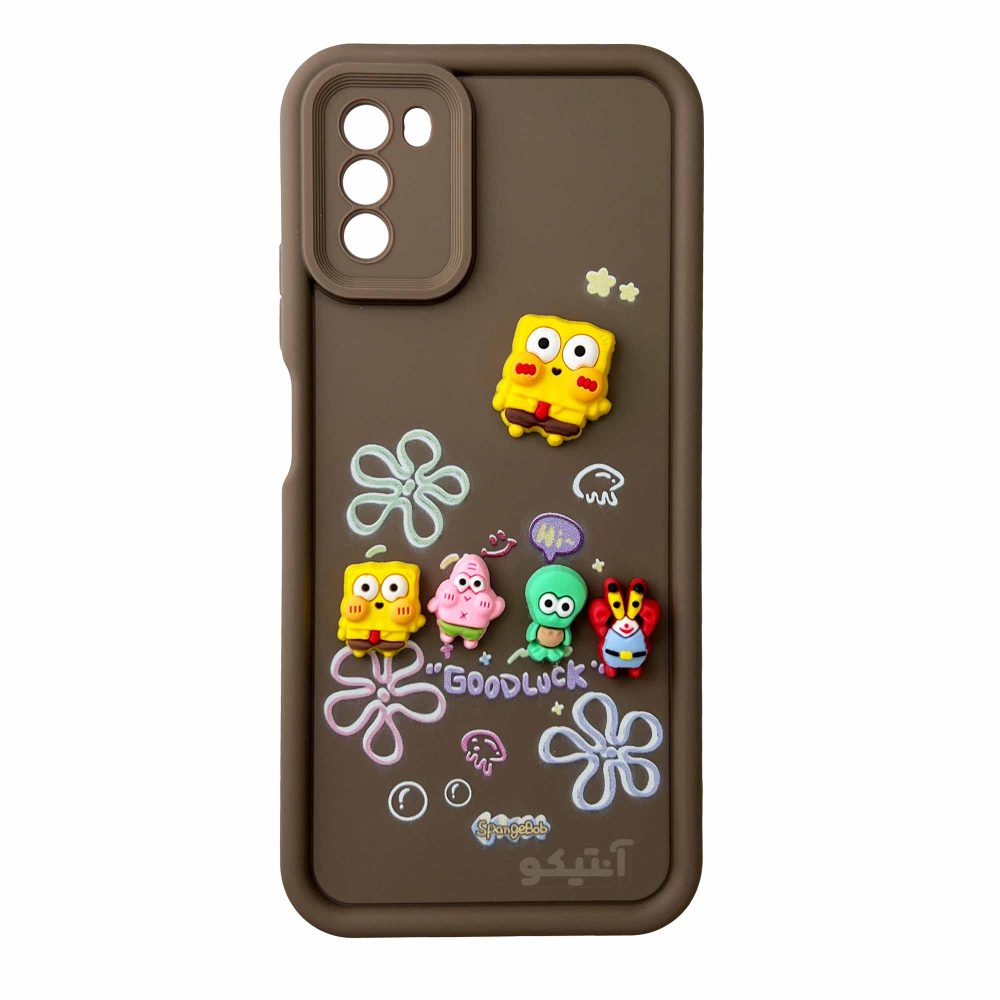 قاب Solid عروسکی طرح خانواده باب اسفنجی مناسب برای Xiaomi Poco M3-قهوه ای