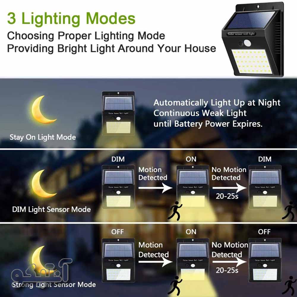 - دارای سنسور حرکتی با حداکثر فاصله آشکار سازی ۳ الی ۵ متر از طرفین